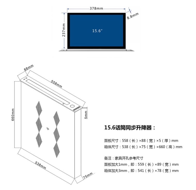 超薄高清屏升降器是我厂最早研发用于多媒体会议系统的多功能升降器。产品轻巧,性能稳定可靠,操作简单智能化。液晶显示器的上升过程中,面板自动打开,液晶显示器直立伸出桌面后,自动进行角度调整,可微调,可连续调节。升降器开始下降时液晶屏自动调整为直立状态,显示器电源自动断电,液晶屏完全下降面板自动合起,避免人工操作,避免显示器损坏,具有防盗,防尘,美化桌面等功能。
