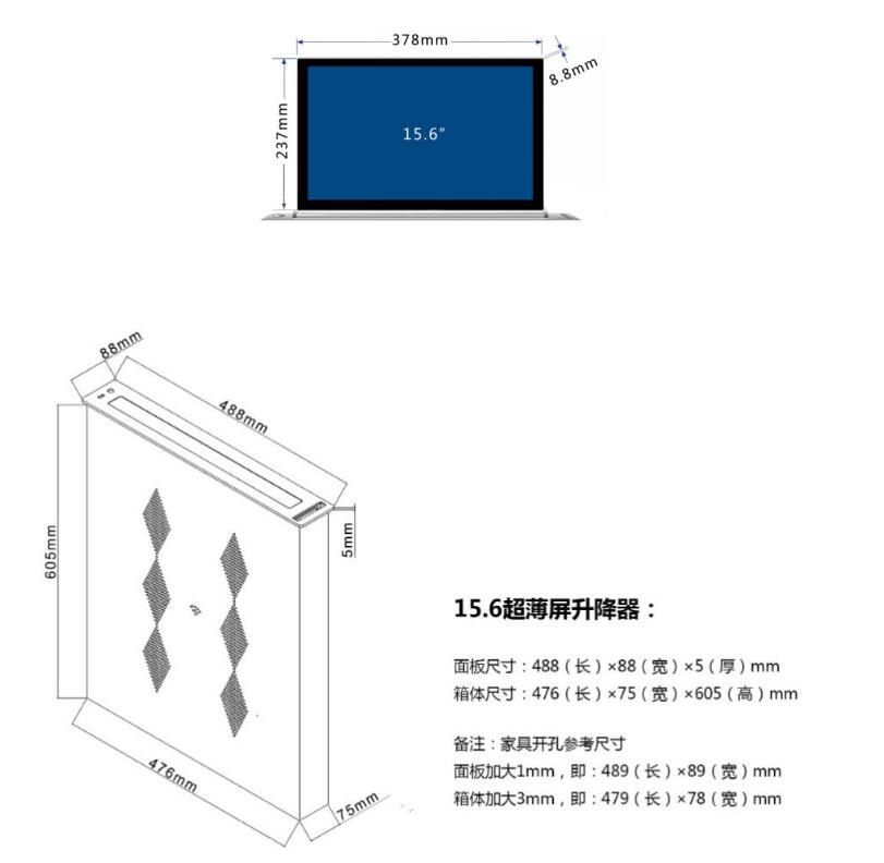 7、超薄高清显示屏与圆轴式升降器无外露连接线、无连接背板、无外露螺丝,保证升降显示高清屏整体美观大方。